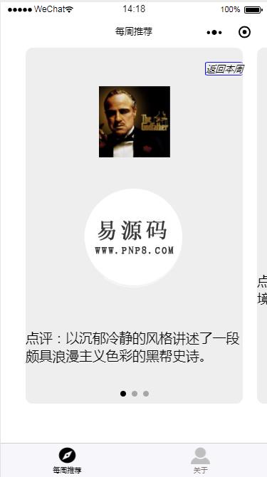 • 微信小程序电影周推荐demo完整源码下载