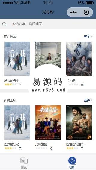 • 微信小程序光与影热映电影影音娱乐demo完整源码下载