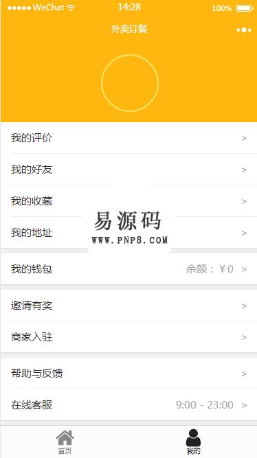 • 微信小程序黄色界面风格外卖订餐demo源码下载