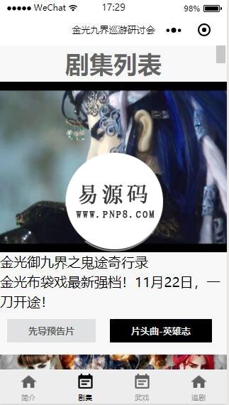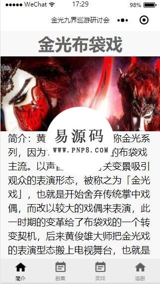 • 微信小程序金光九界巡游研讨会影音娱乐demo完整源码下载
