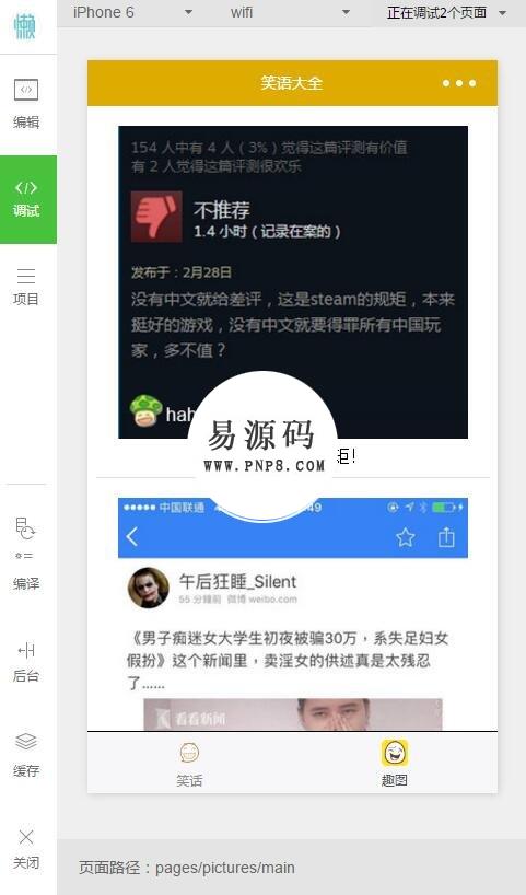 • 微信小程序综合笑话大全趣图demo完整源码下载