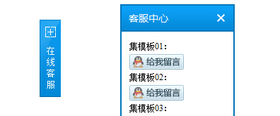 多款不同版本的在线客服代码,默认为蓝色风格,附件提供多个css样式,调用不同样式可达到更换皮肤风格的特点,效果很不错