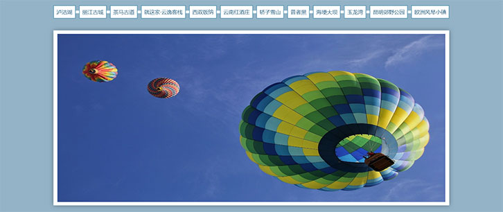 一款宽屏的jQuery旅游相册图片tab切换展示特效,点击文字标题选项卡标签切换对应的相册大图预览。