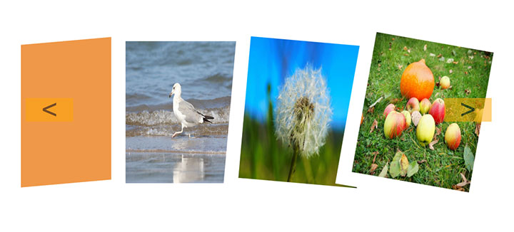 非常有个性的一款jQuery倾斜布局图片列表动画翻转切换代码,左右按钮控制图片前后切换。
