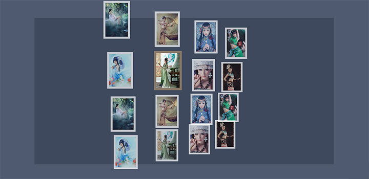 一款非常酷的jQuery 3D立体视觉响应式图片墙动画特效,图片可以随机分布在屏幕上,随着鼠标移动图片墙会形成不同的视角,因此给人3D立体的视觉效果。