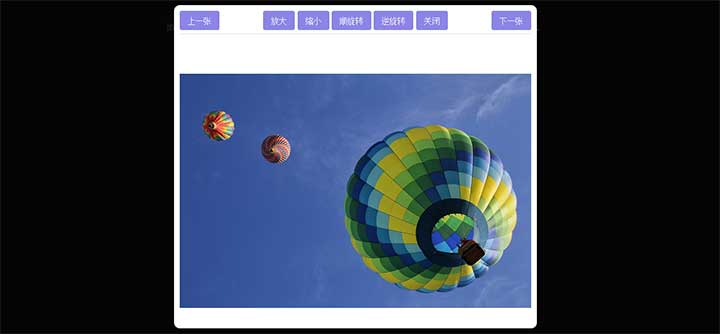 jQuery弹出图片放大缩小旋转插件是一款弹出窗口打开图片展示代码,支持图片放大缩小旋转、拖动上一张下一张切换查看效果。