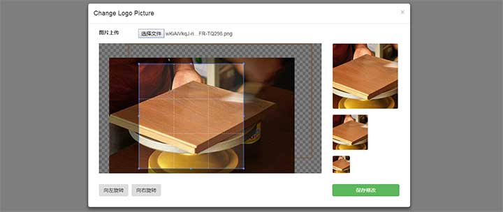 一款实用的html5头像图片上传裁剪保存代码,点击修改头像图片,弹出上传界面修改。点击头像图片上传,支持图片拖动调整、向左旋转、向右旋转等功能。