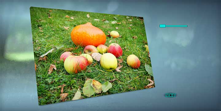 很有创意的一款HTML5图片倾斜3D旋转轮播代码,全屏图片倾斜布局,支持滑块拖动从不同角度看图片3D翻转效果。