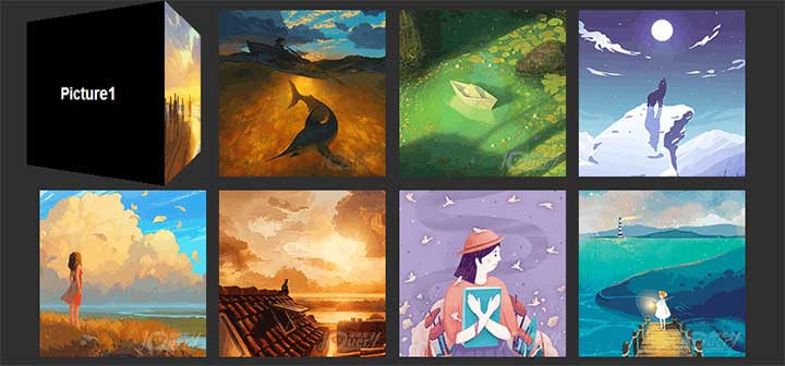 这是一款简单好看的jQuery CSS3鼠标悬停图片3D翻转动画代码,网格布局显示图片列表,翻转的方向根据鼠标进入图片的方向而定。