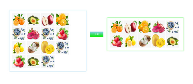 一款采用数组去重的方法过滤重复的水果图片效果代码,jQuery水果图片重复筛选去除代码。