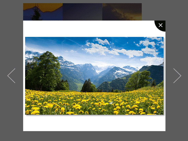 jQuery图片相册点击缩略图弹出大图预览特效是一款缩略图排列,鼠标点击小图的时候弹出层显示大图,带切换按钮与关闭按钮的js特效代码。